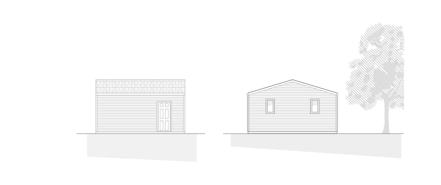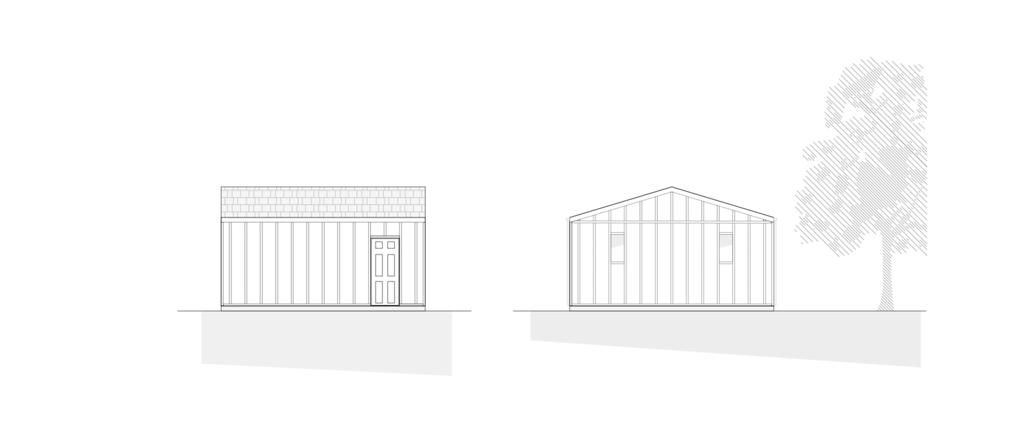 - キットセット®️ 木構造躯体、屋根材、外装材、雨樋、構造釘金物,標準ガレージドア1箇所ないしは2箇所,外開きドア、防水紙