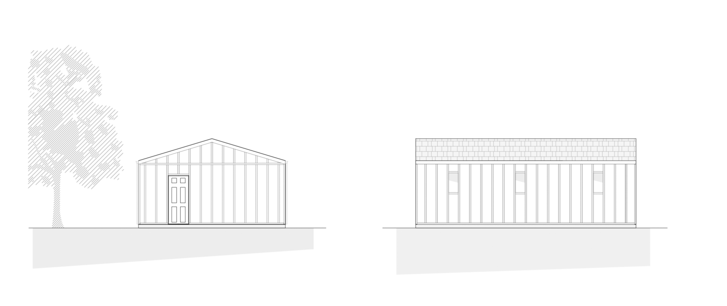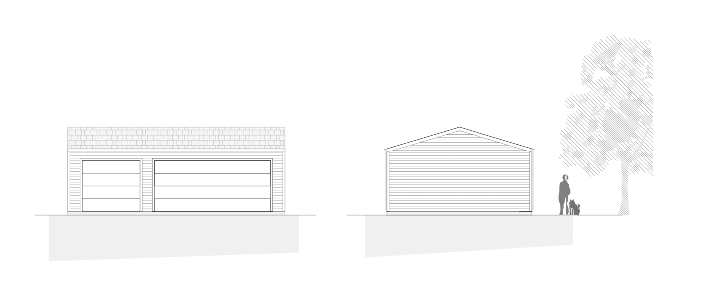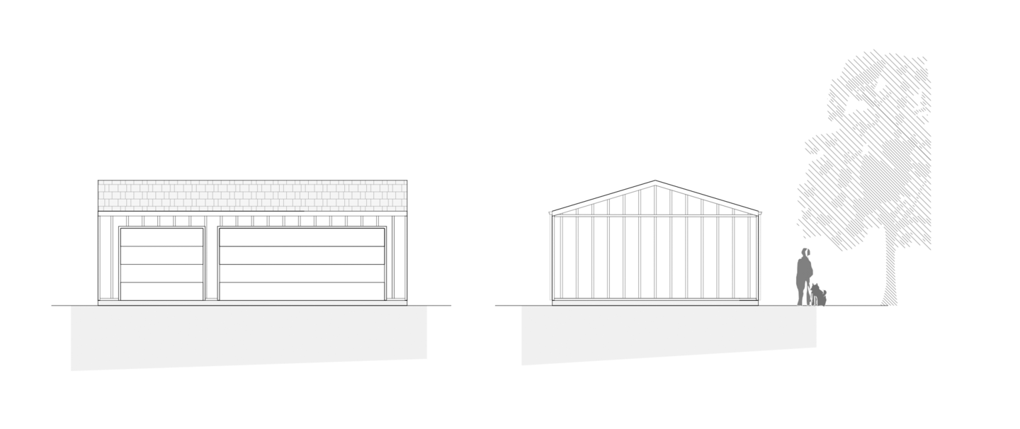 - キットセット®️ 木構造躯体、屋根材、外装材、雨樋、構造釘金物,標準ガレージドア1箇所ないしは2箇所,外開きドア、防水紙