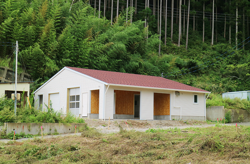 在来の木造では想像できない程大きな屋内空間を実現出来る「G-FACTORY」。ガレージとしてはもちろん、船舶用倉庫や自動車ディーラー民間車検工場、ガラスを使用する芸術作品のアトリエや、陶芸のアトリエとしてもご愛用頂いております。イープランの事務所もG-FACTORYで、向かって左側は2階建てにし、事務所や物置の展示などで使用しています。向かって右側は大空間を利用して物置・資材の倉庫や木材加工スペースなどとして使用しています。