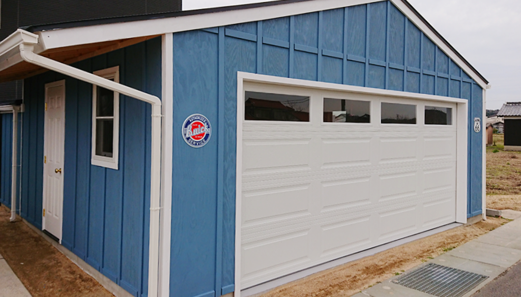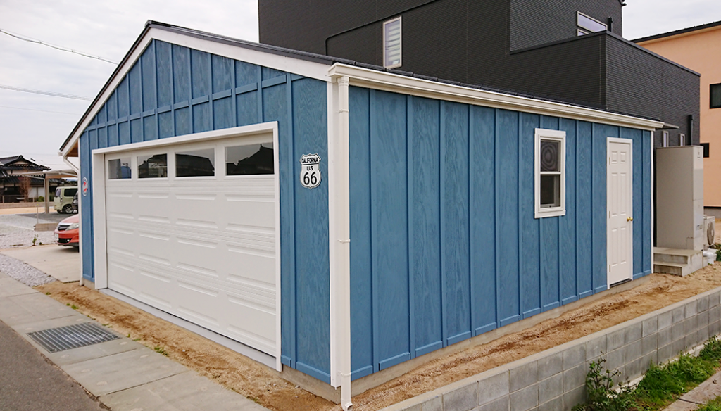 イープランではF4まで施工させて頂きました。その後はオーナー様がご自身で塗装されたそうで、完成写真を頂きました!!青いガレージと白いガレージドアがとても相性が良いですね。こんなに綺麗に塗装がされており感激しました。