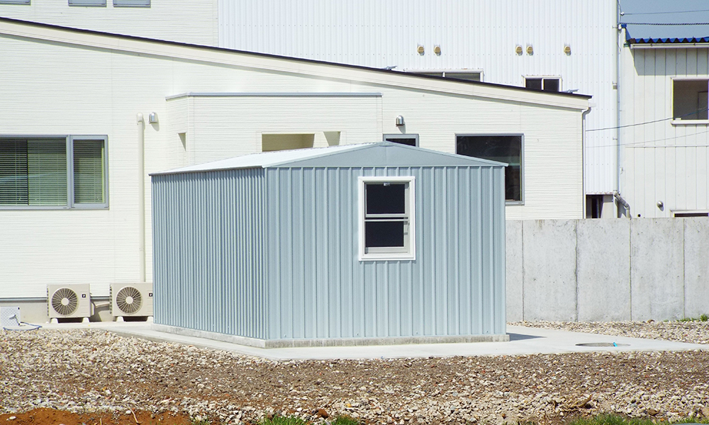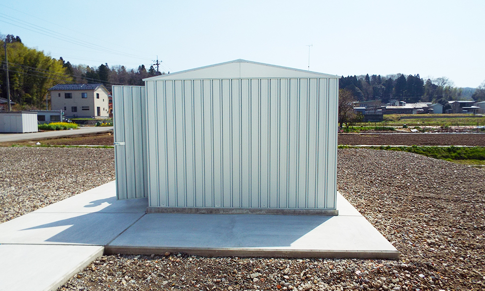 最初は車庫っぽいのがよかったんですけど、そのサイズを探していてこの品番になりました。仕事で物置として使おうと思って購入しました。ブライダル関係の仕事なんですが、商品とか席次表とかを作っています。それ以外の収納は子供の自転車入れたりとかですね。あと今はわんちゃんおいてますけど。