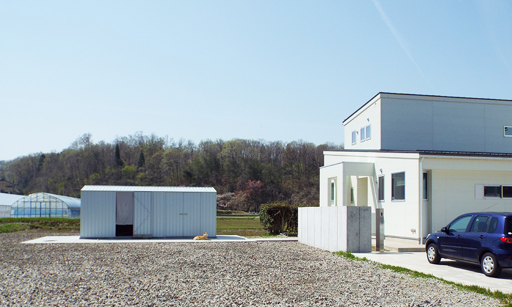 広々とした景色の中に佇むワークショップ6030HK3。ユーロ物置®特有の上質なシルバーが際立つ白い母屋は、ブライダルのDTP媒体を制作しているDesign Store様邸。大型物置に窓や換気を取り付けて、犬小屋としてご使用されているとか。今回のEEmagazineは石川県の6030HK3を取材しました。