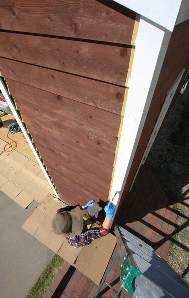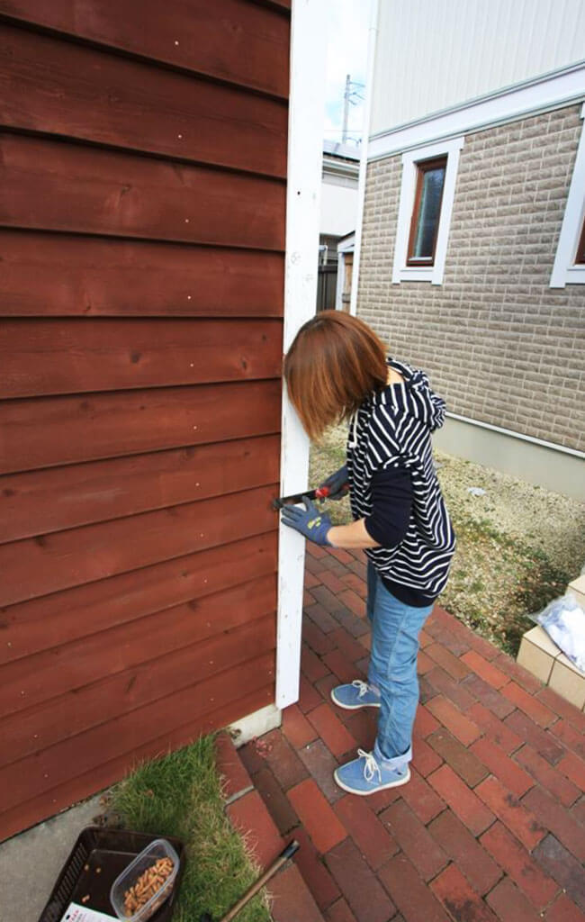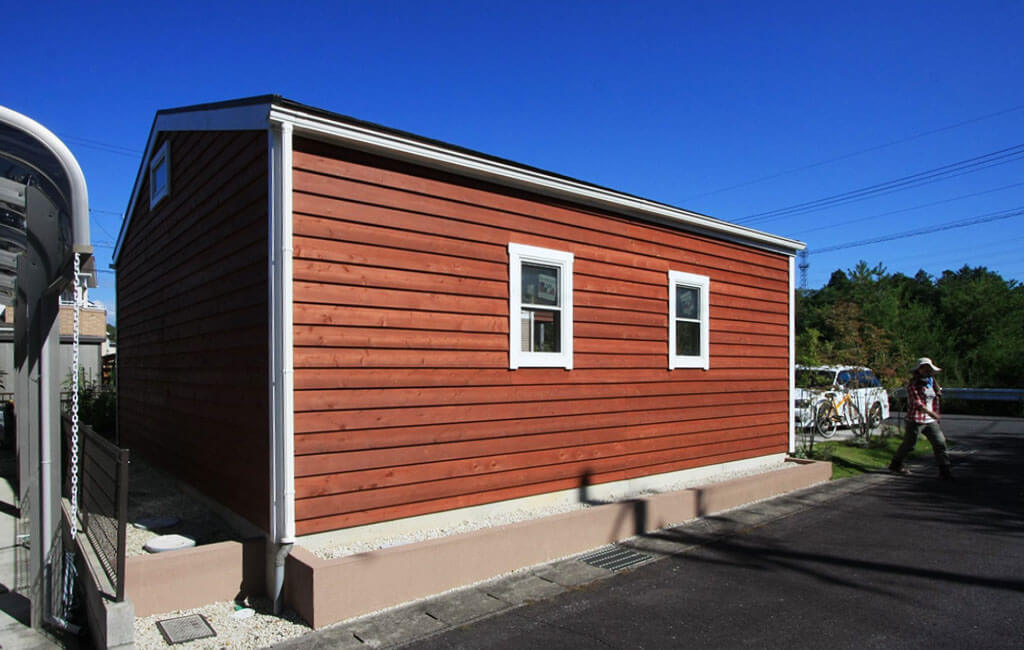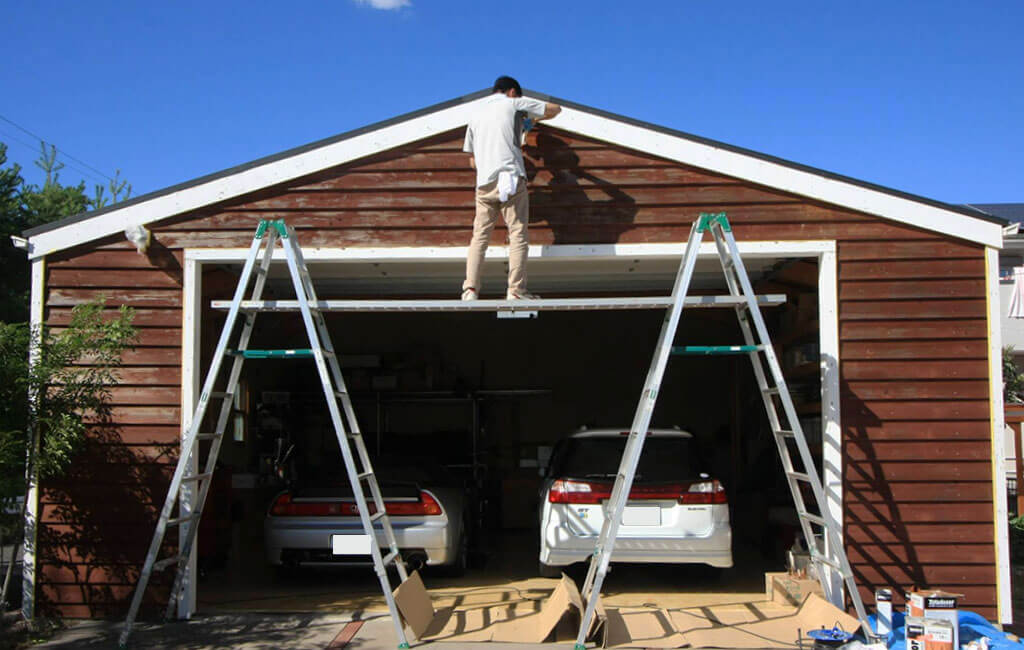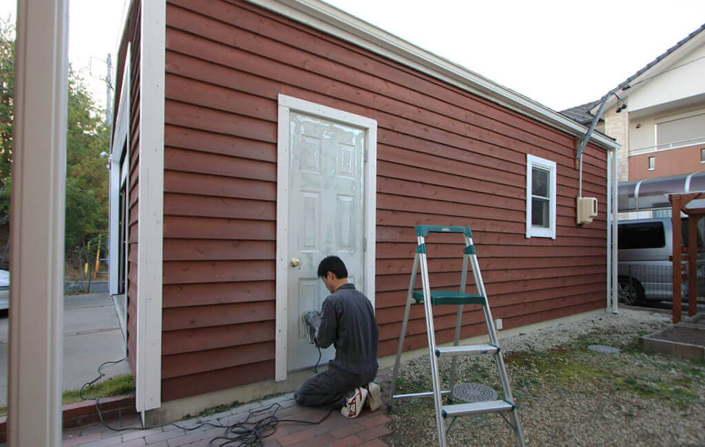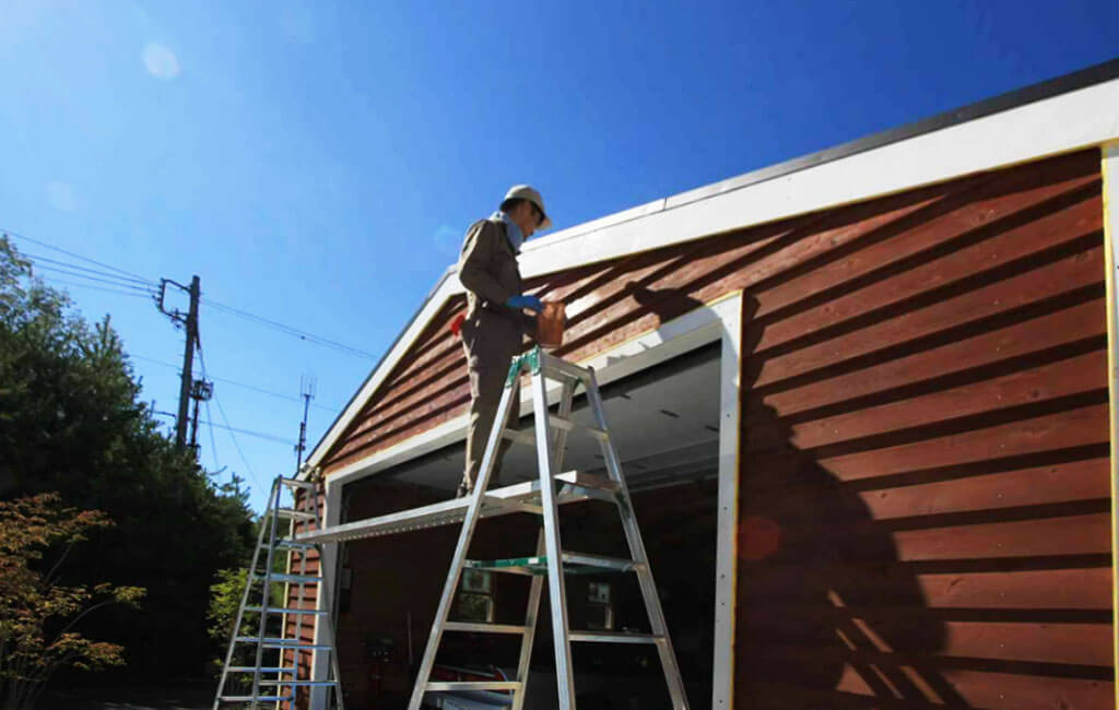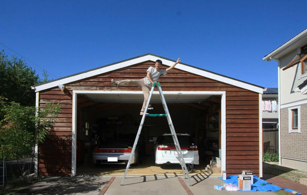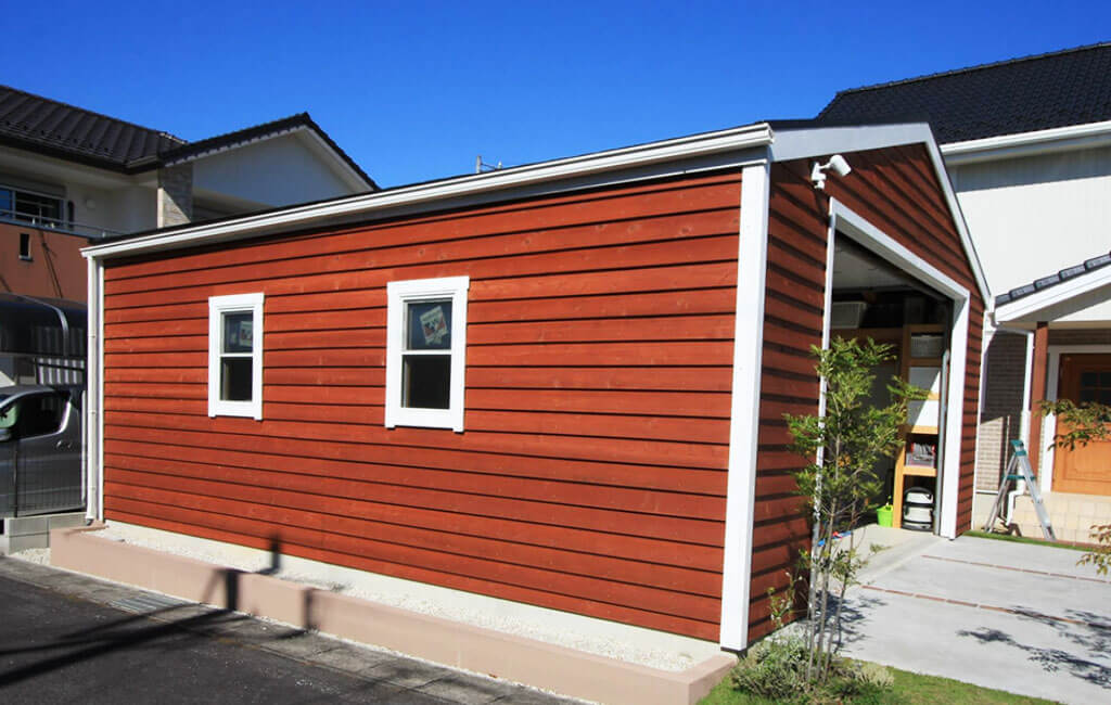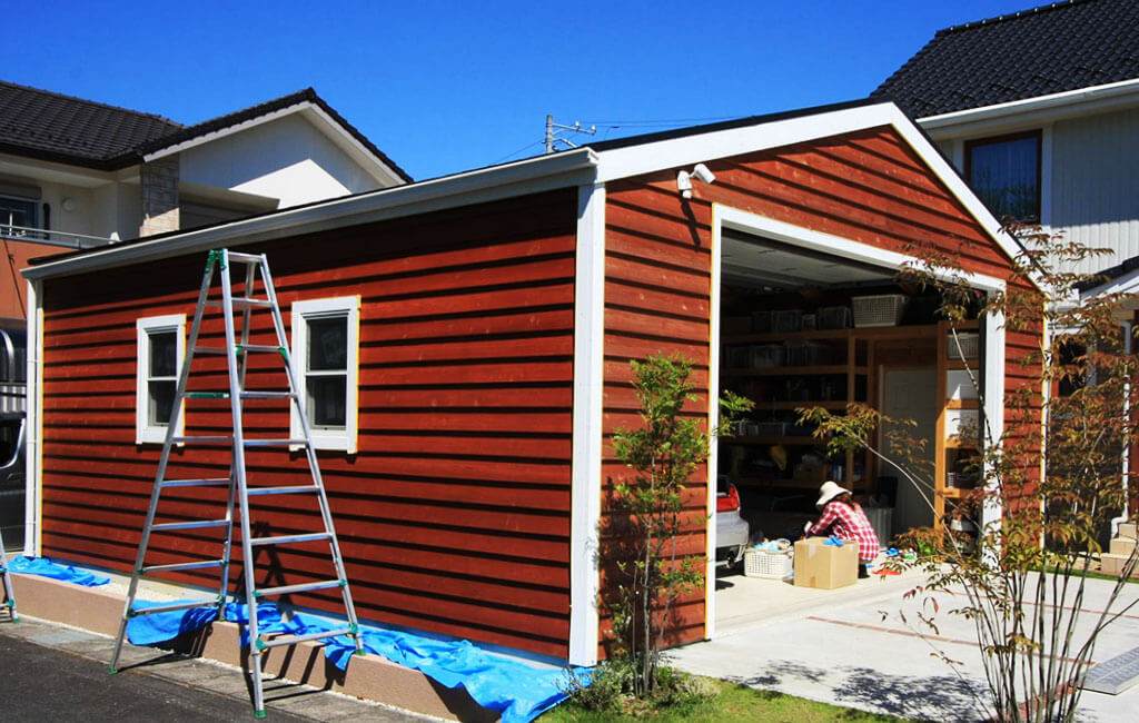 イープランの木造ガレージ「G-CEDAR」のオーナー様が、経年変化に伴いご家族で再塗装DIYされた写真をご紹介します。
