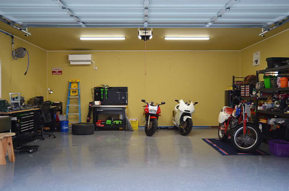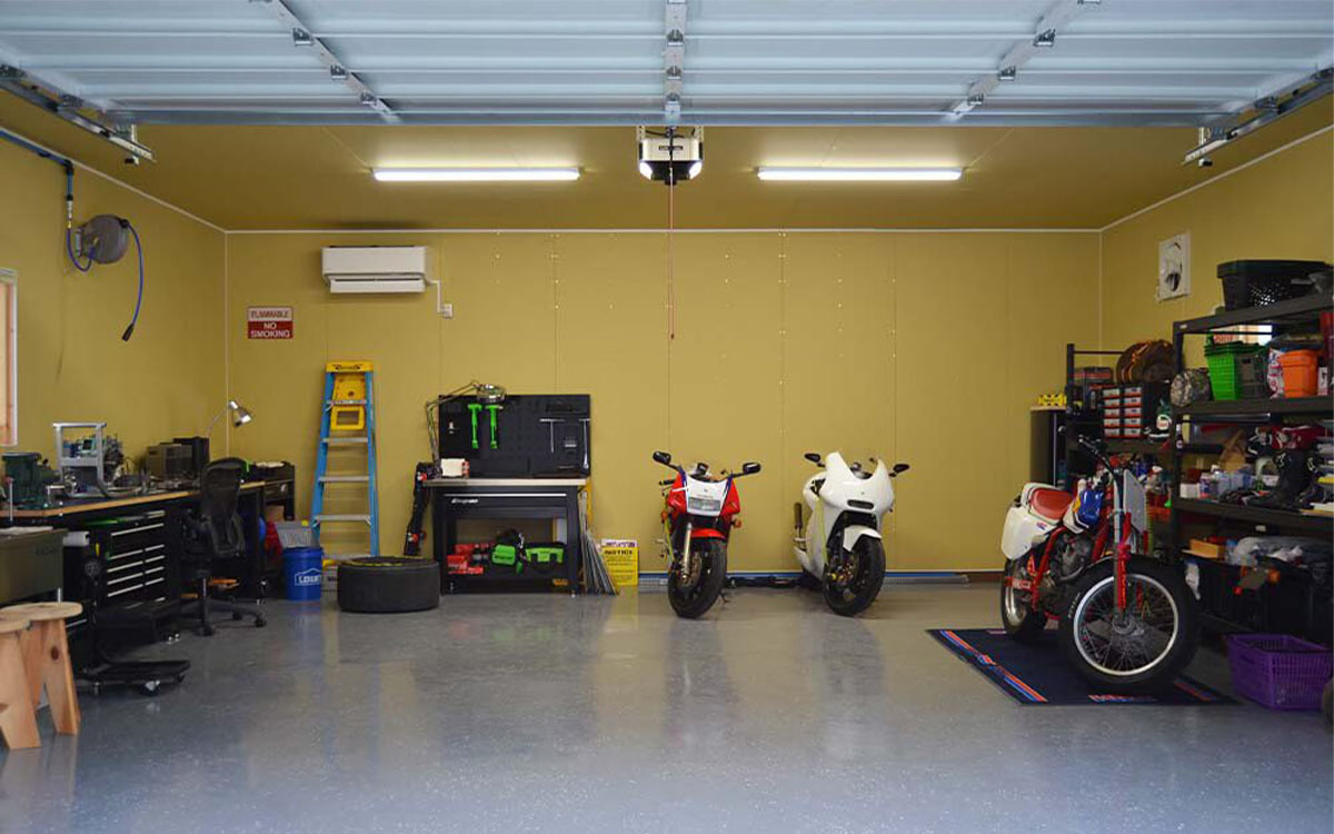今回のオーナー様は、バイクの整備や趣味の道具を置く場、作業場としてガレージをご利用いただいております。