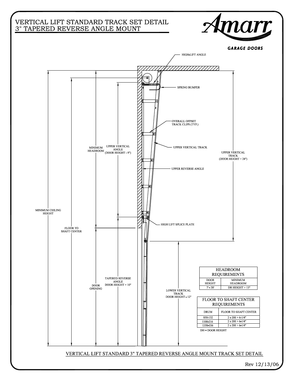 - 最後に天井部の開口部からの奥行きです。ガレージドアの高さ+18inch(460mm)は必要ですし、ドアオープナーを設置するには ガレージドアの高さに4feet2inch(1270mm)を加えたスペースが必要です。