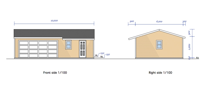 泊まれるガレージ「Sleepout」2台用-10.0×6.0m/PLAN A