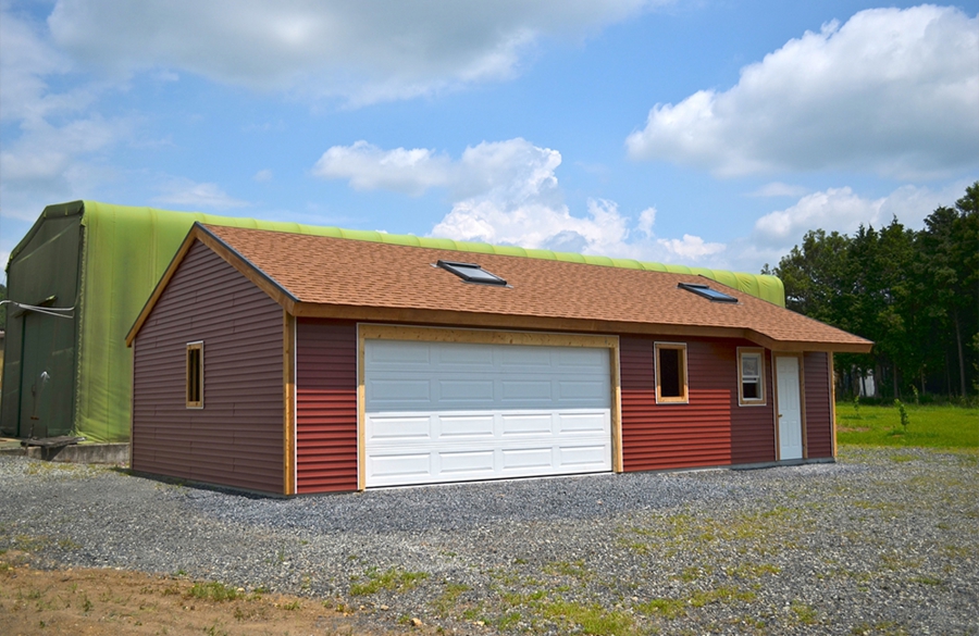 イープランの木造ガレージ「Sleepout」はガレージに居住空間をプラスした建築物です。Sleepoutの居住空間は、住宅レベルの設備から物置程度の小屋空間まで幅広く対応しております。