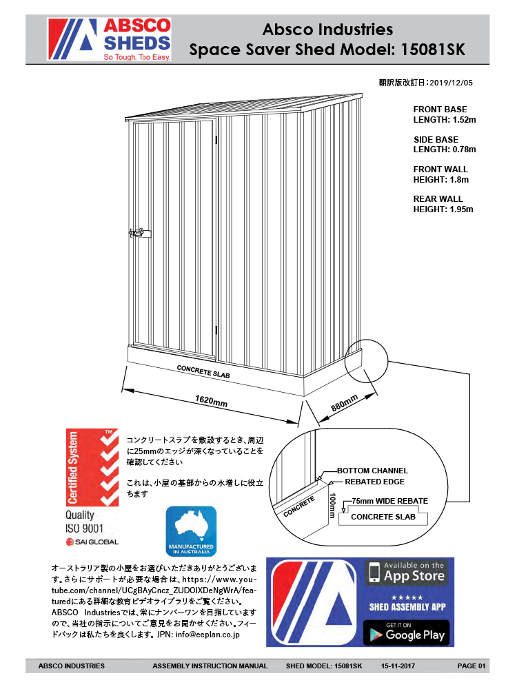 この物置と木製床キットの組み立て説明書が無料でダウンロードできます。