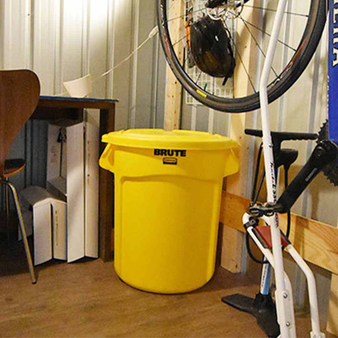 そもそもユーロ物置®に収納するものは芝刈り機、手押し車、庭道具などの機器などです。上記の条件のいずれかによって悪影響を受ける可能性がある家財などは、樹脂製で防水が期待できる容器に入れて置くといいでしょう。コンクリートの上に木製のスノコを置くのも方法です。