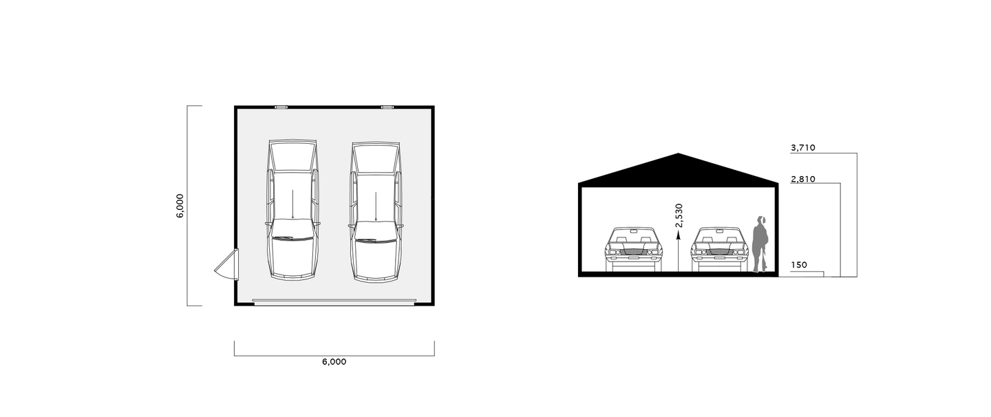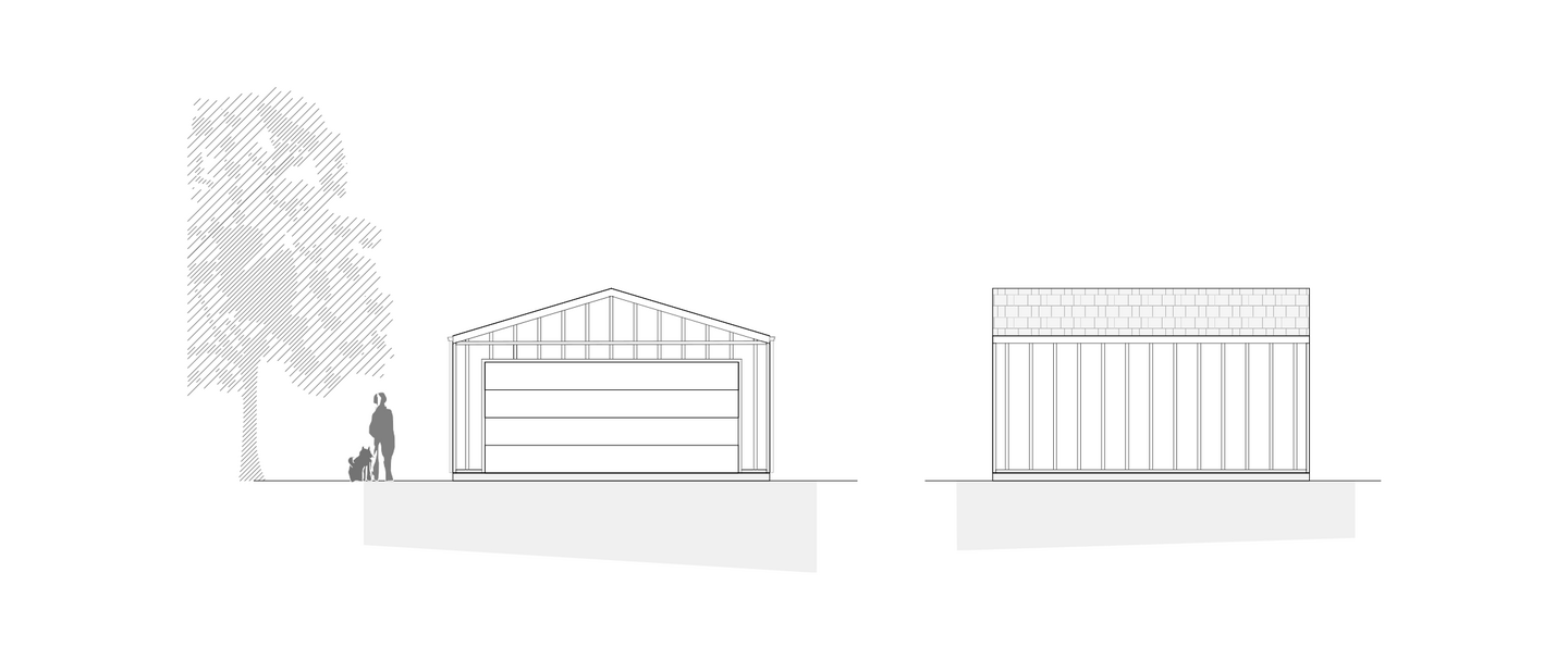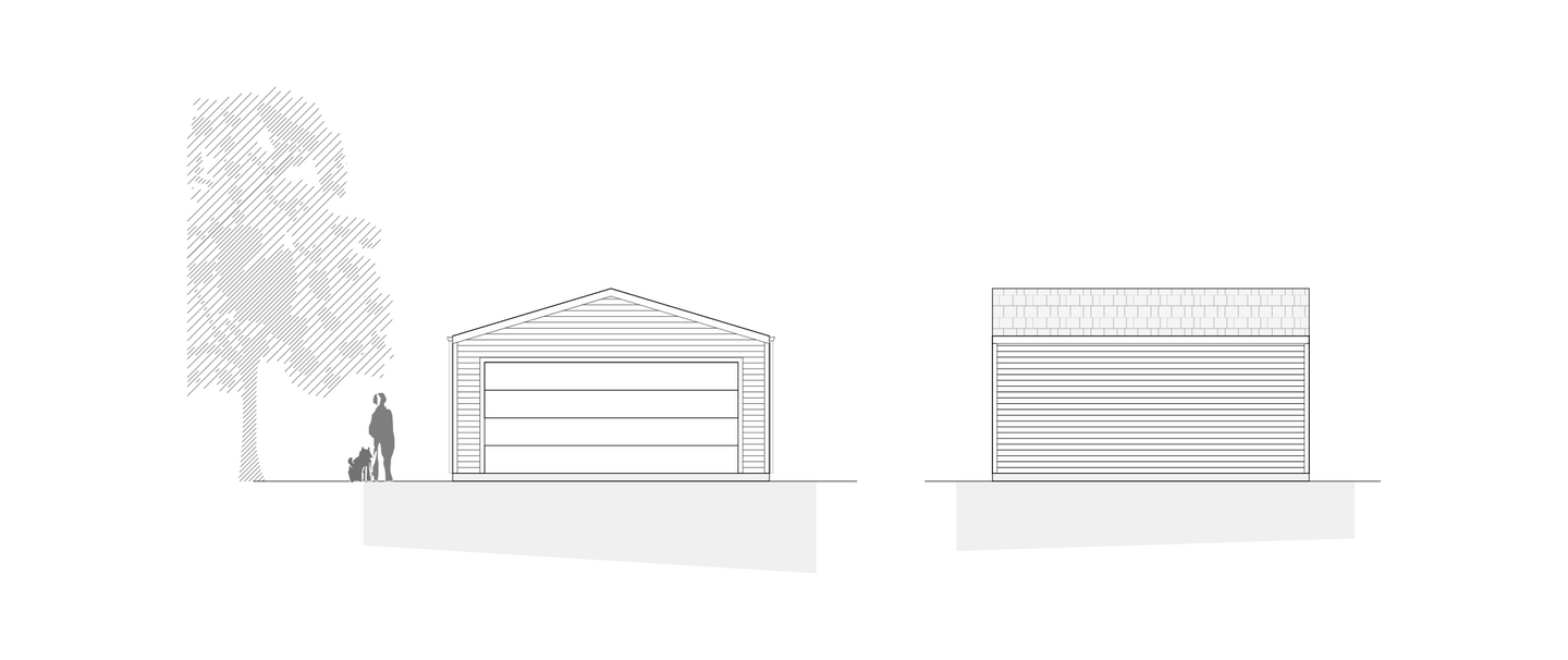 - キットセット®️ 木構造躯体、屋根材、外装材、雨樋、構造釘金物,標準ガレージドア1箇所ないしは2箇所,外開きドア、防水紙