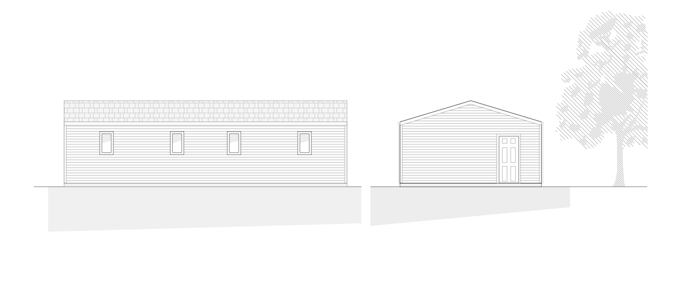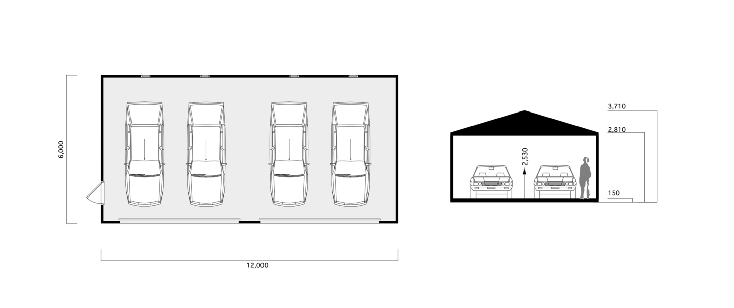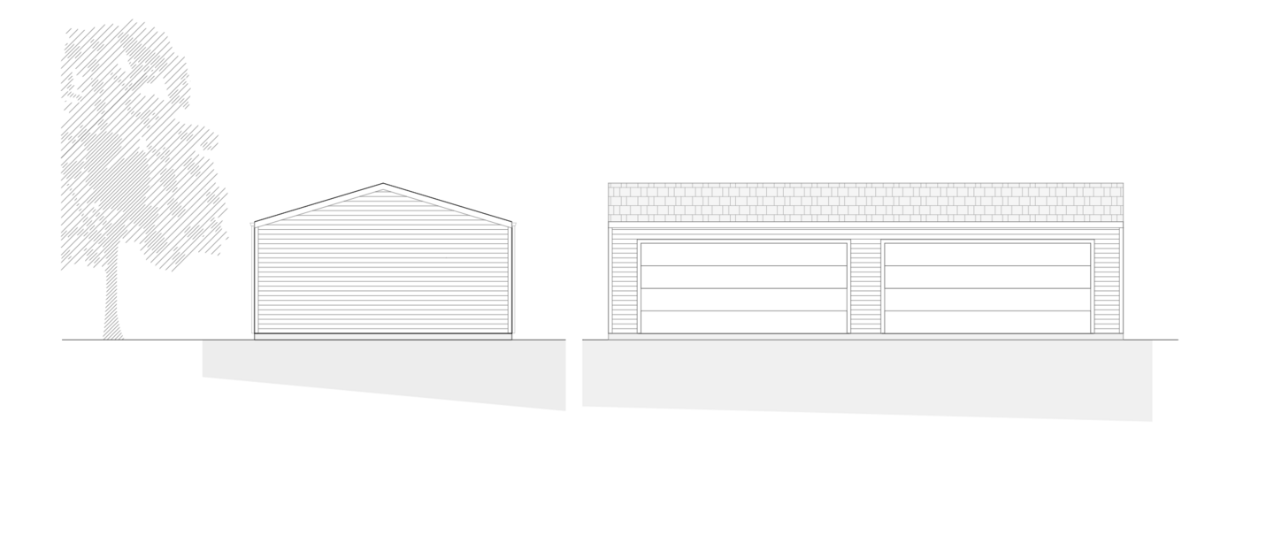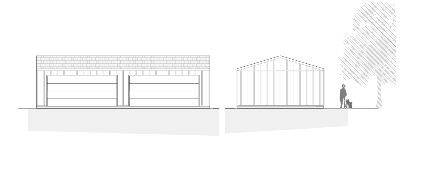 - キットセット®️ 木構造躯体、屋根材、外装材、雨樋、構造釘金物,標準ガレージドア1箇所ないしは2箇所,外開きドア、防水紙