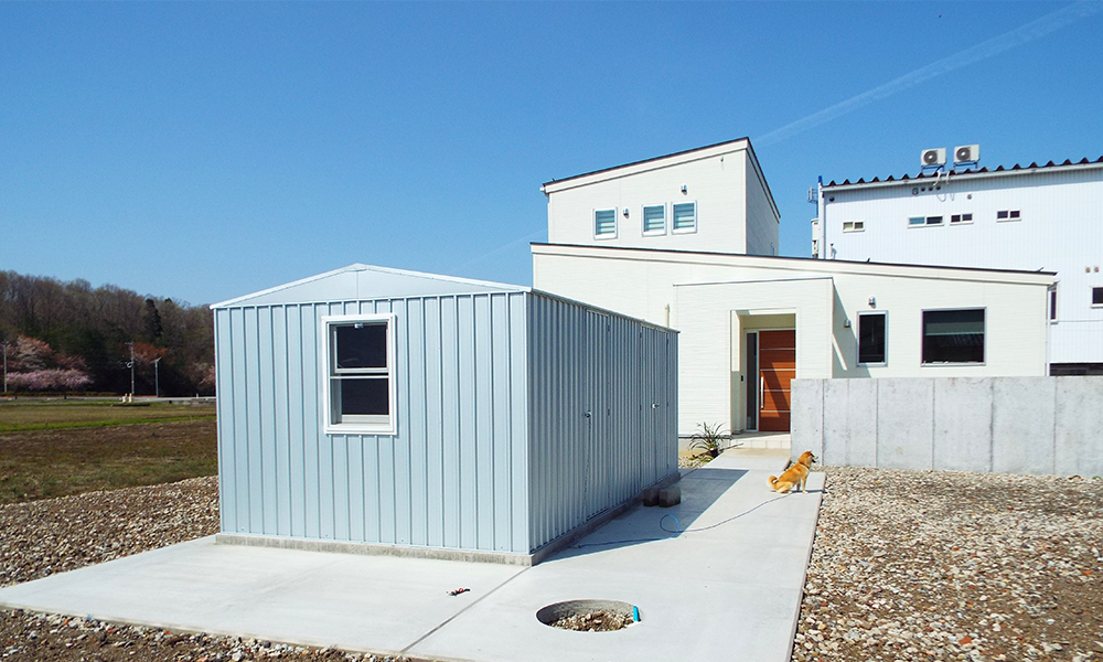 広々とした景色の中に佇むワークショップ6030HK3。ユーロ物置®特有の上質なシルバーが際立つ白い母屋は、ブライダルのDTP媒体を制作しているDesign Store様邸。大型物置に窓や換気を取り付けて、犬小屋としてご使用されているとか。今回のEEmagazineは石川県の6030HK3を取材しました。