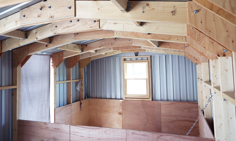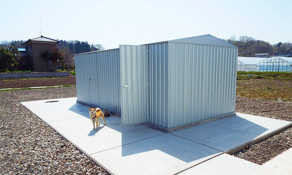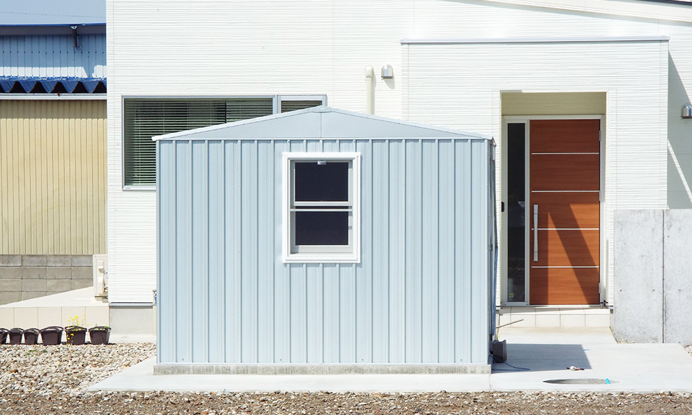 最初は車庫っぽいのがよかったんですけど、そのサイズを探していてこの品番になりました。仕事で物置として使おうと思って購入しました。ブライダル関係の仕事なんですが、商品とか席次表とかを作っています。それ以外の収納は子供の自転車入れたりとかですね。あと今はわんちゃんおいてますけど。