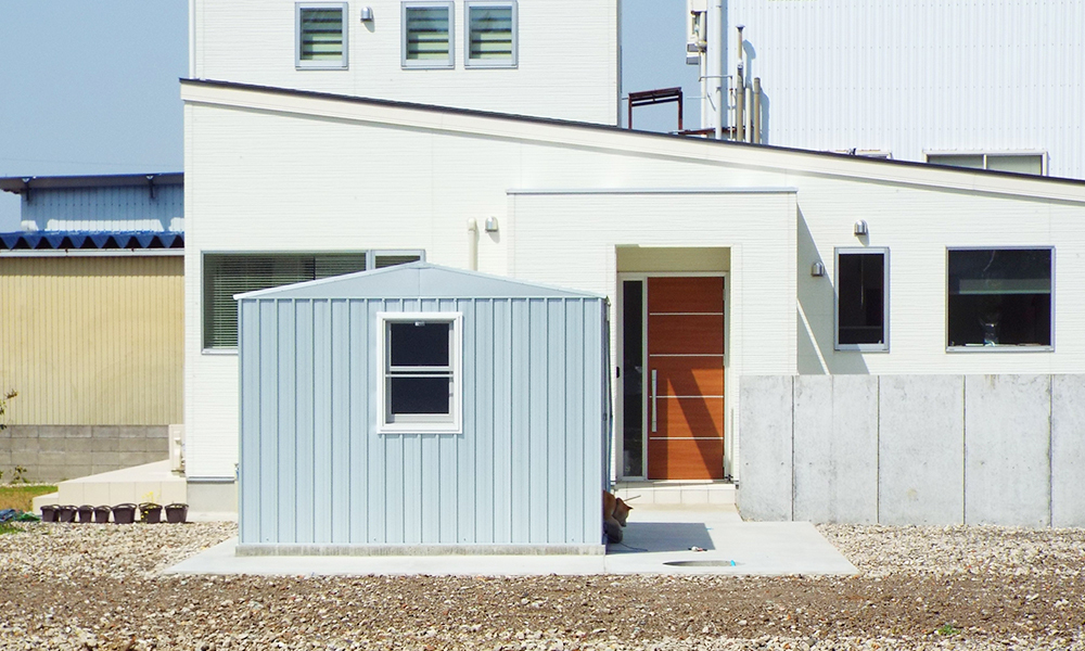 田んぼです。それを申請して宅地にしたんです。基礎は業者さんにお願いしました。家はまだ建ててから一年半くらいです。物置の形は気に入っています。今の所不具合もありません。強いて言えば気になるのは壁の薄さですかね。木で頑丈なんで大丈夫だと思います。