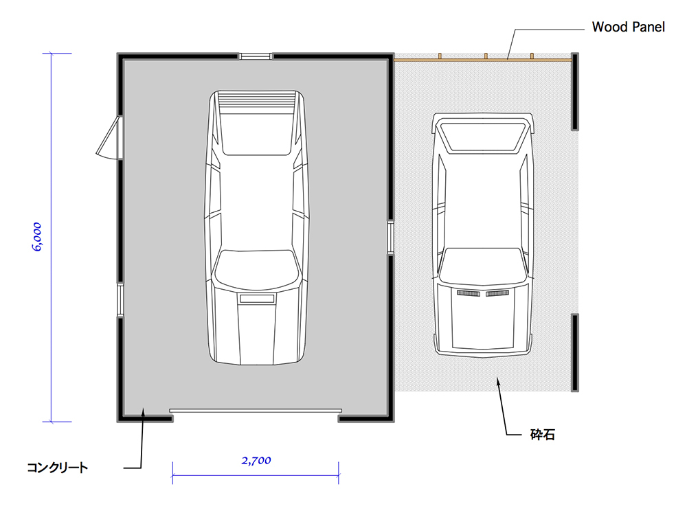 ※カーポート部分は砕石です。コンクリート基礎はオプションになります。