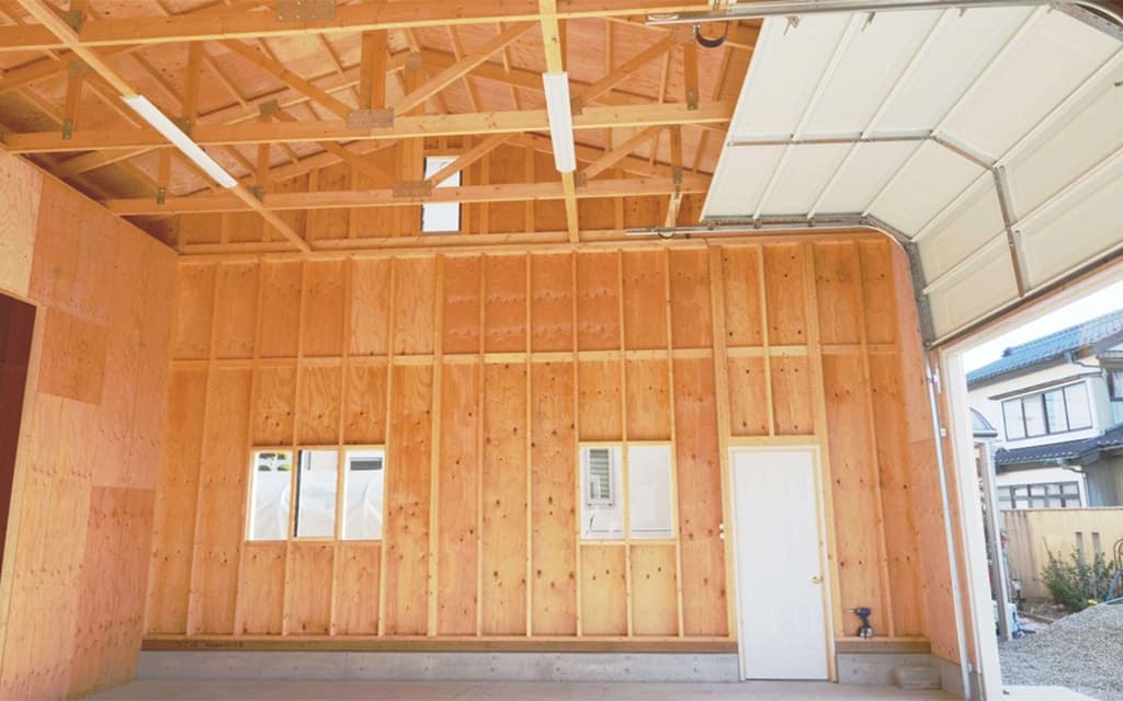 私たちもその考え方に共感し、日本ではまだ少ない 2×4工法による木造ガレージにこだわり続けています。