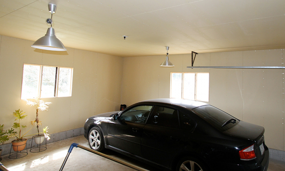 壁だけ石膏ボードで被覆しても、天井が木材が出ているので車庫として使用できません。