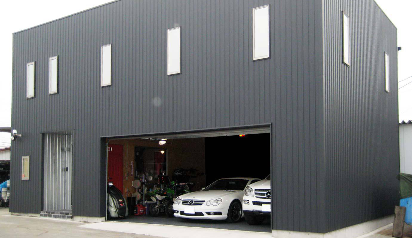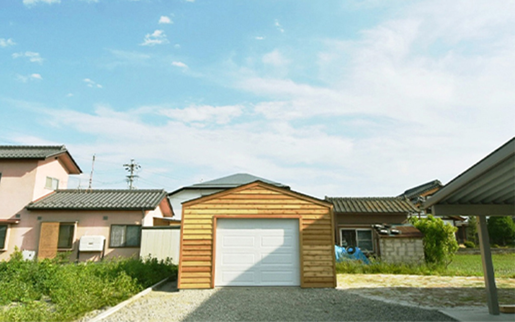 合成樹脂サイディングの木造ガレージG-HOLIDAY