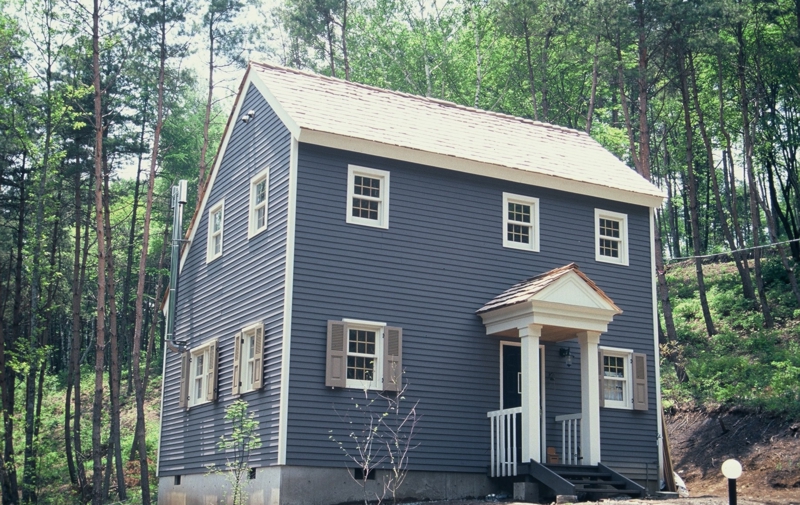 外装をSPF 材でつくりました、オリンピックステインのソリッドカラーです。窓枠も壁の全て同色にするのが、どうも最近の